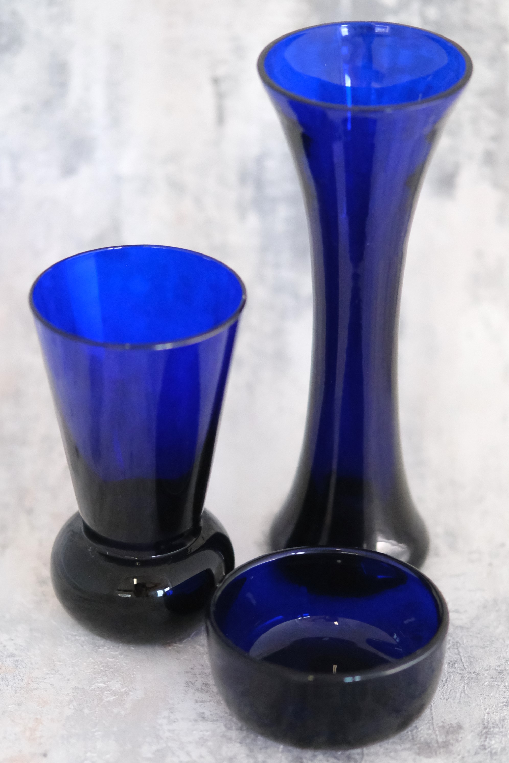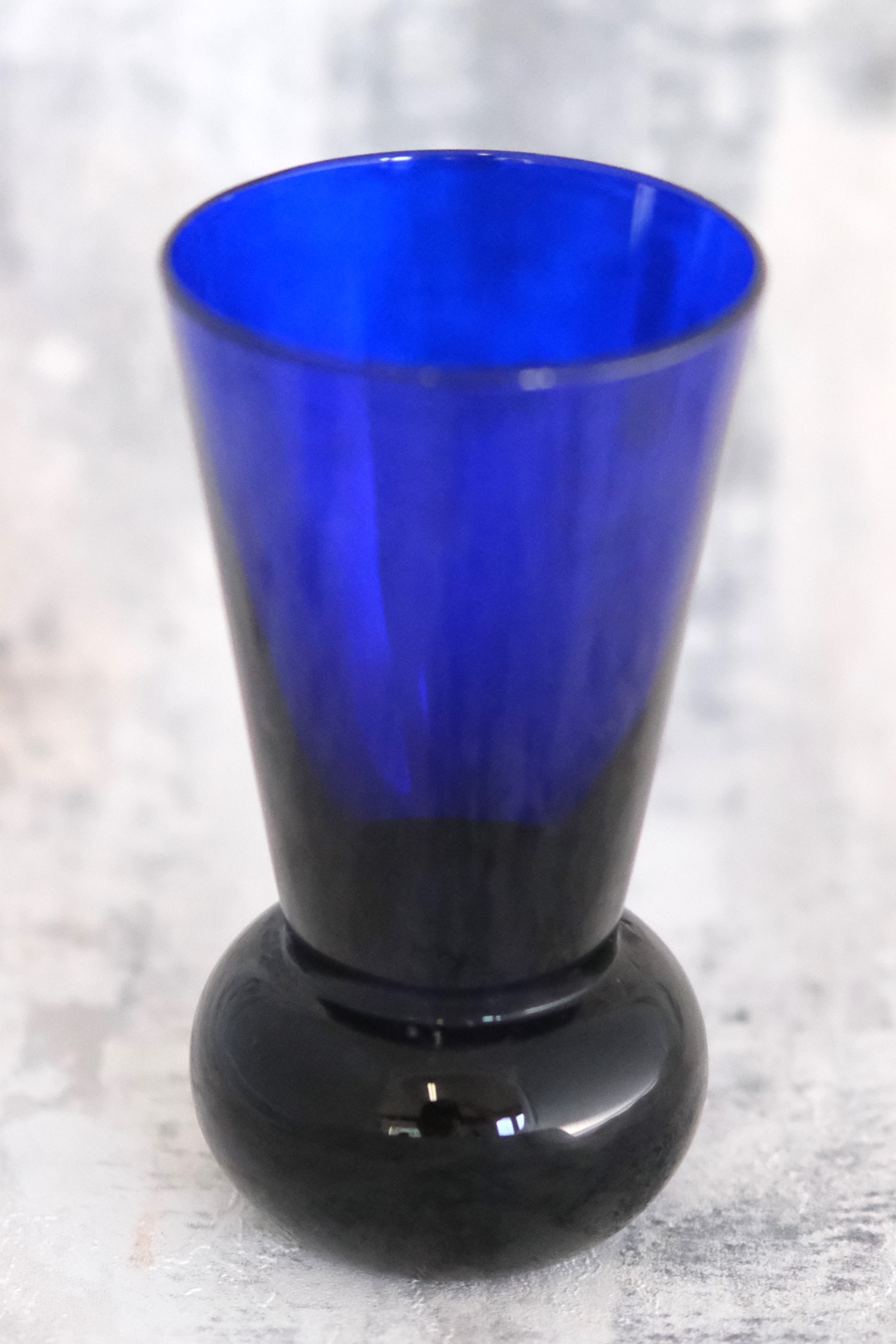 Believed to be a hand blown Bristol Blue bud vase this is a thing of beaty! A great placement for this item would be in the window so its colour can truely shine.