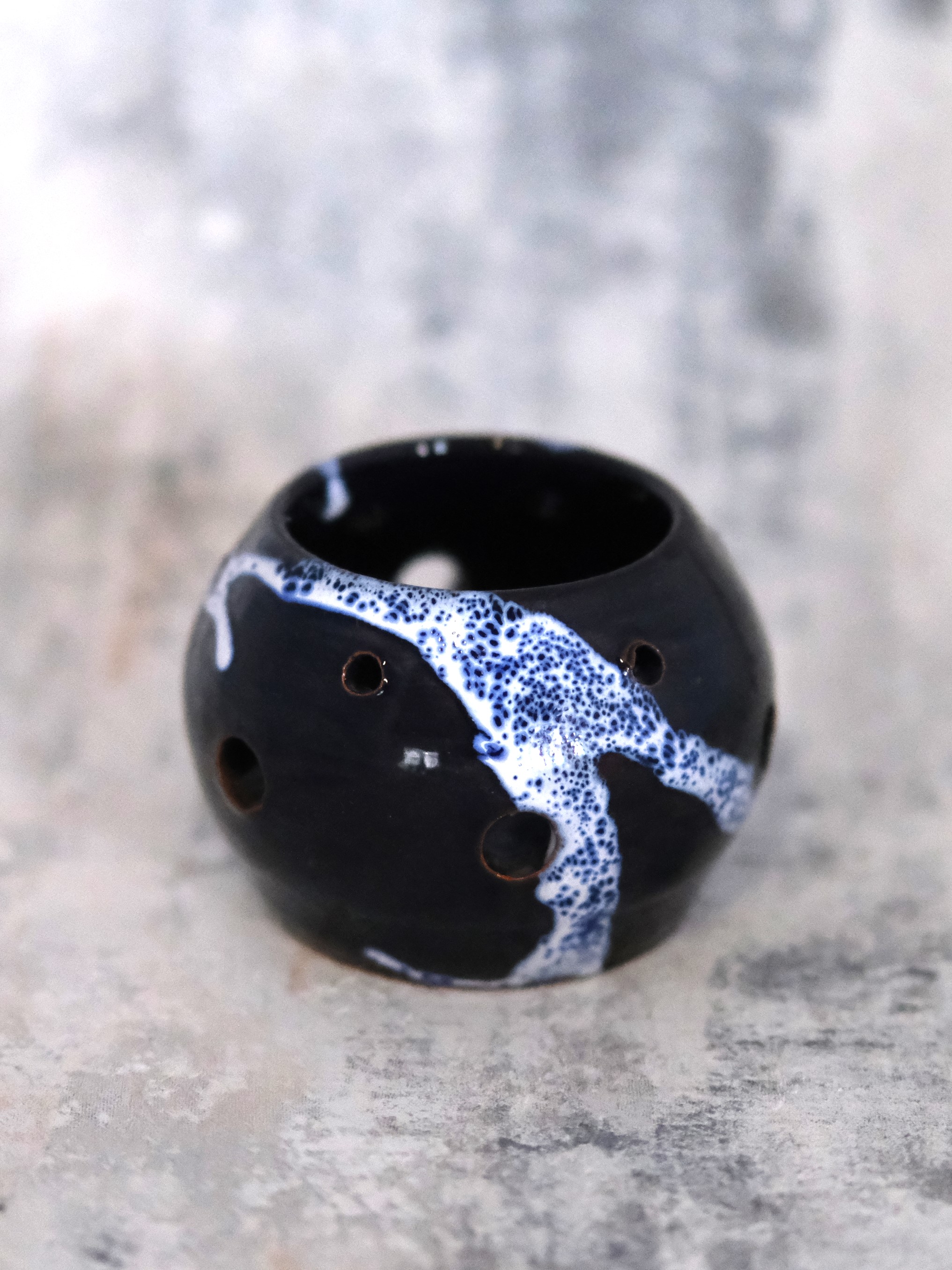 Small hand made blue ceramic tea light